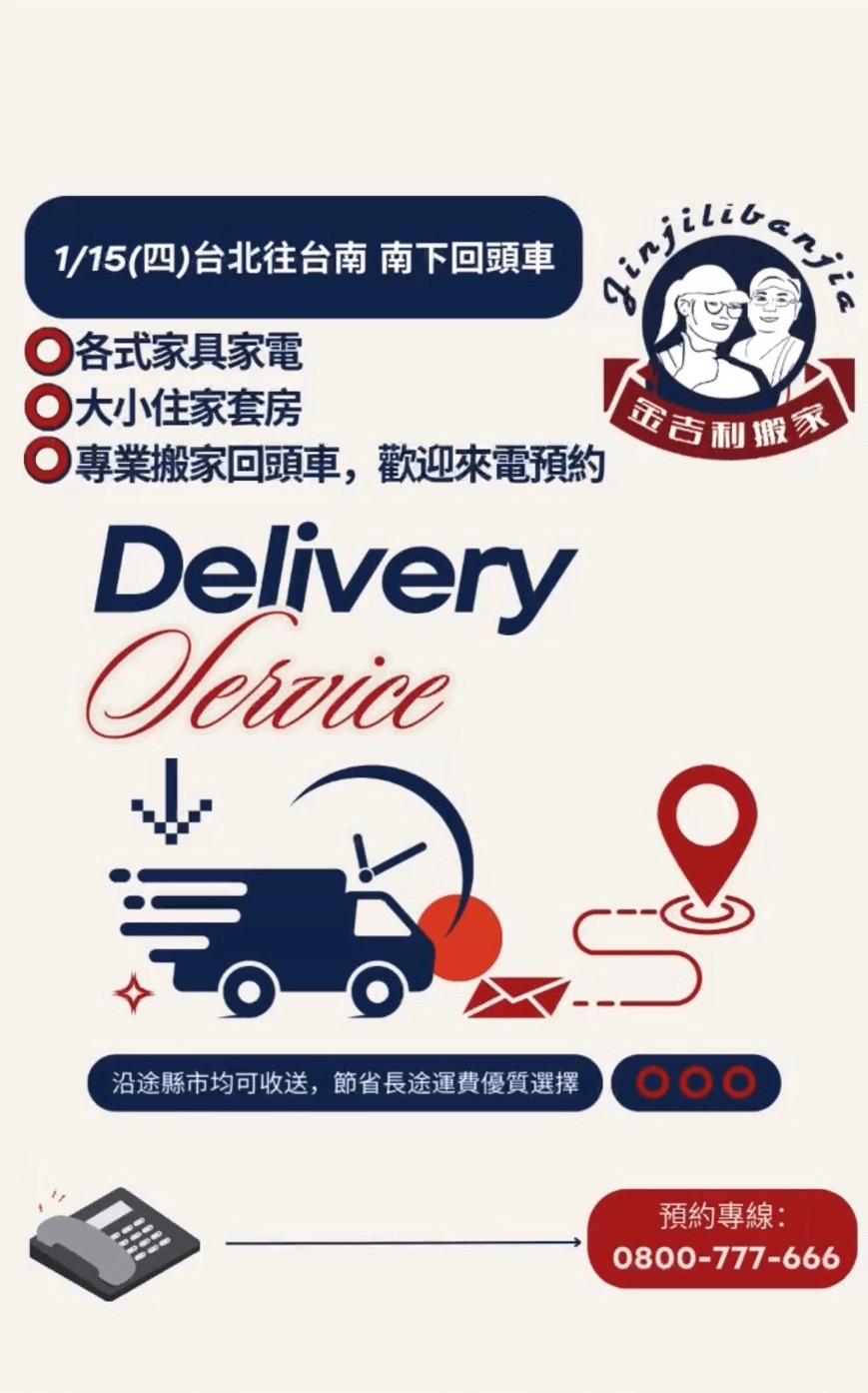 金吉利台南搬家長途搬運省錢專案來囉!